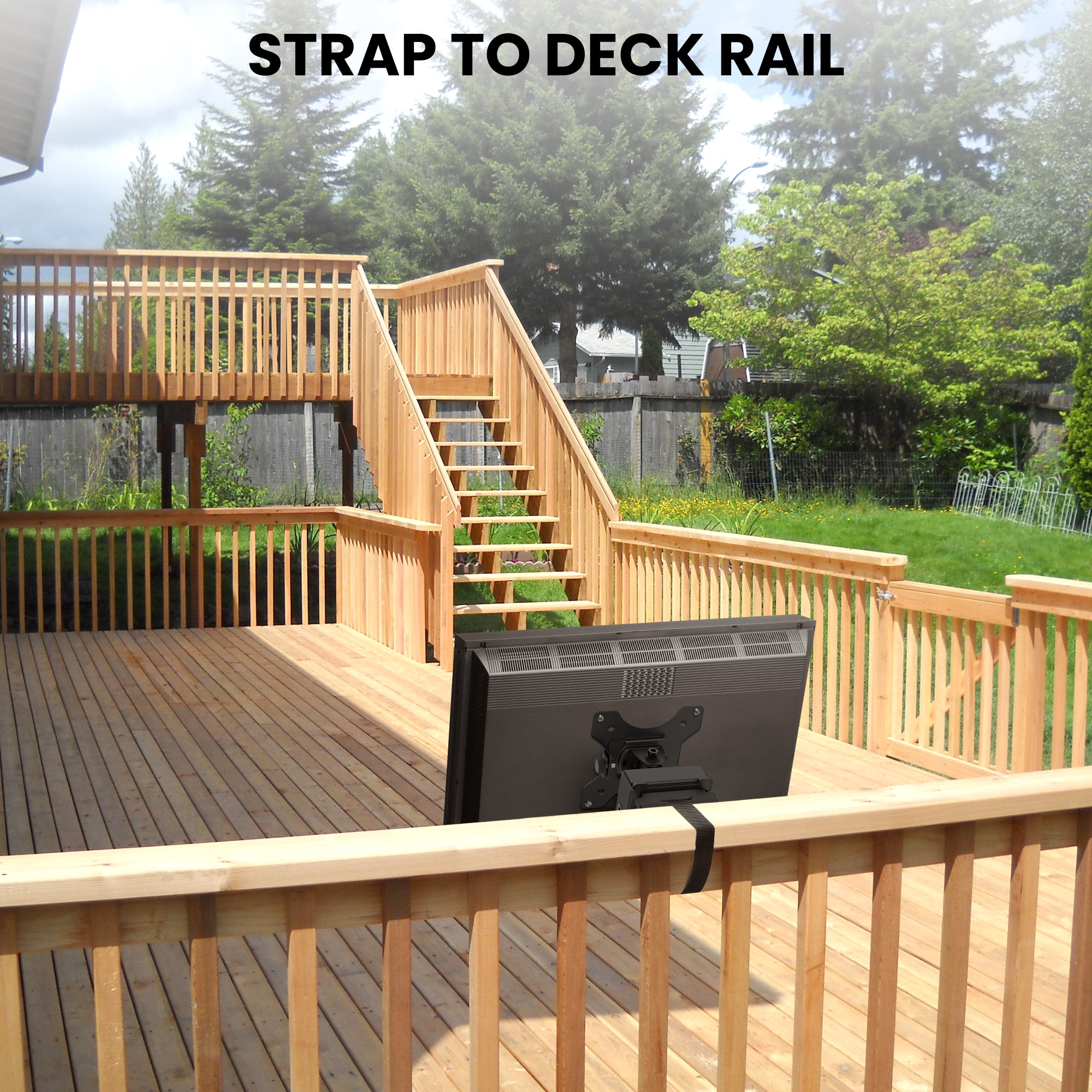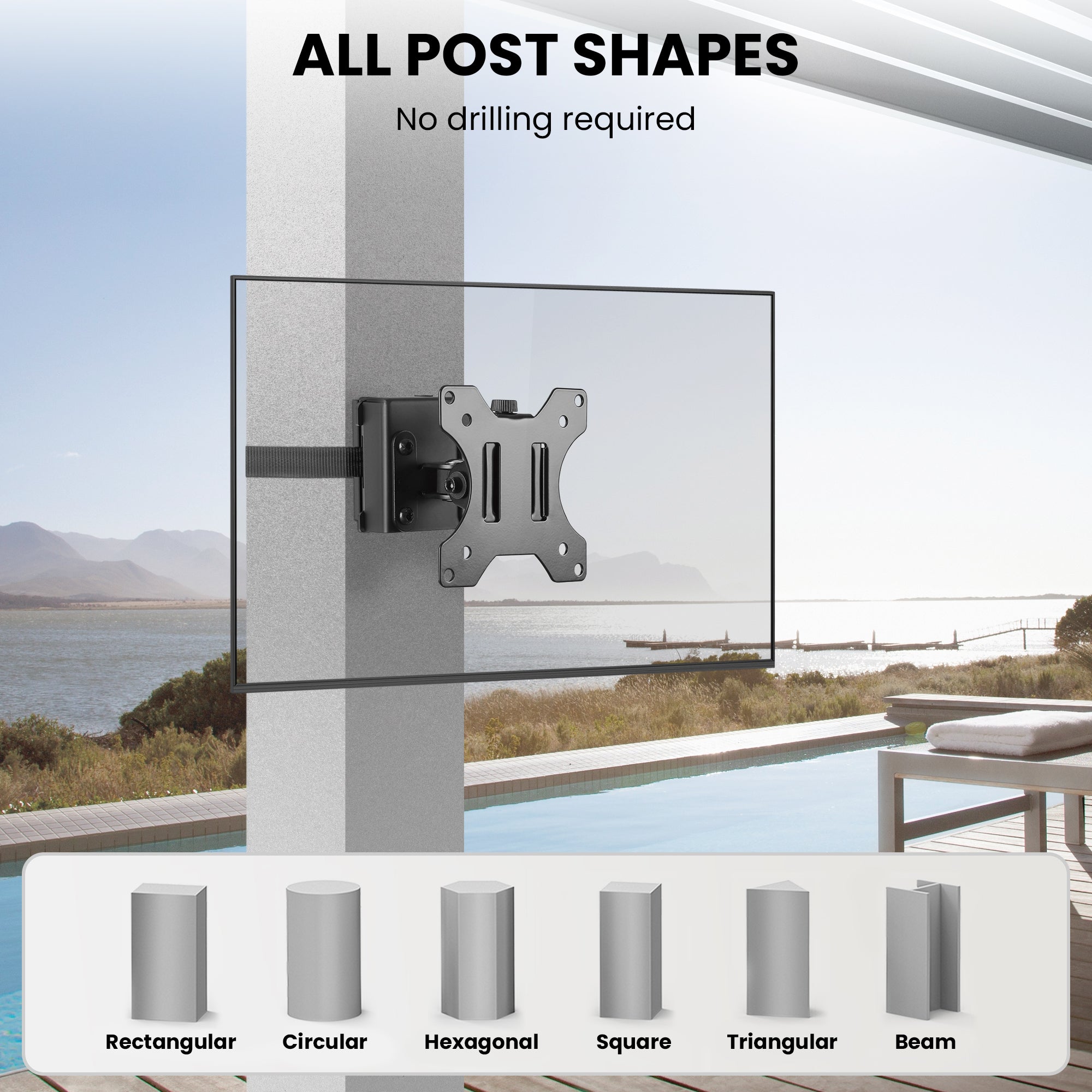 Unlike traditional mounts that require drilling, the ZZTVS2011 uses a heavy-duty strap-on system that securely wraps around poles, beams, or even ceilings—making installation fast, tool-free, and renter-friendly. Whether you’re setting up a TV in your gazebo, mounting a monitor to a forklift, adding screens to your deck or patio, or attaching a display under an umbrella, this mount delivers unmatched flexibility.