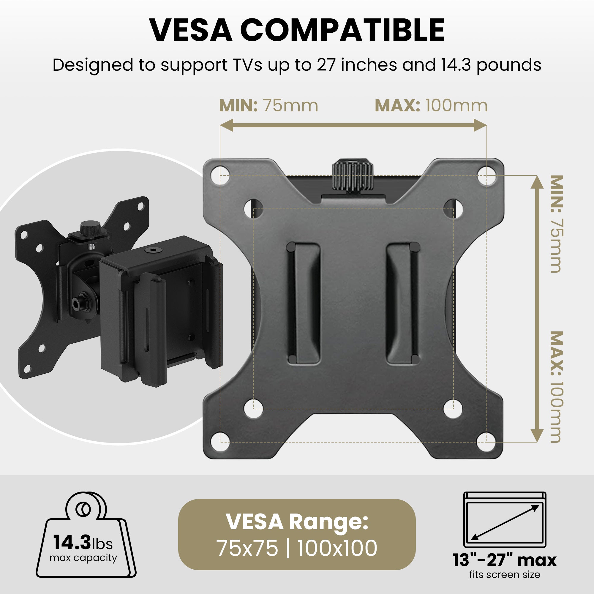 Upgrade your small screen setup with the ZEBOZAP ZZTVS2011 Strap-On Pole TV Mount, engineered for both outdoor leisure and industrial applications. Perfectly sized for 13"–27" TVs and monitors, this mount supports VESA 75x75 and 100x100 patterns, giving you wide compatibility with most small screen brands.